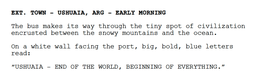 Sem saber do futuro que me aguardava, fui de férias a Ushuaia e pude ver com meus próprios olhos, pela primeira vez, aqueles lugares que já pareciam vívidos na descrição das páginas do meu roteiro.